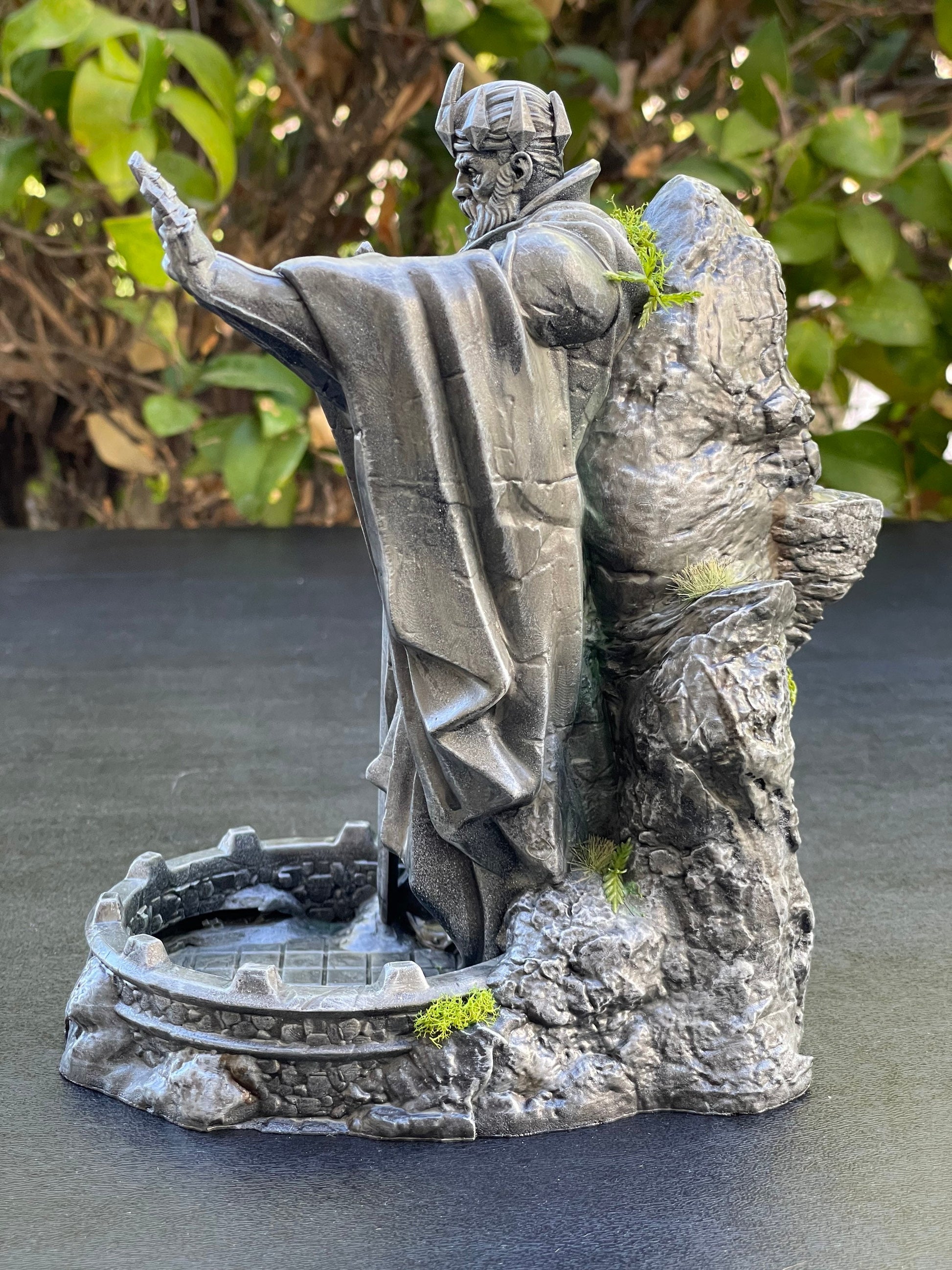 Unlike many of the dice towers on Etsy, this piece is printed in resin. This means that the details are much finer and easier to paint. It also means that the finished product is heavier, and heftier, than filament-printed dice towers.