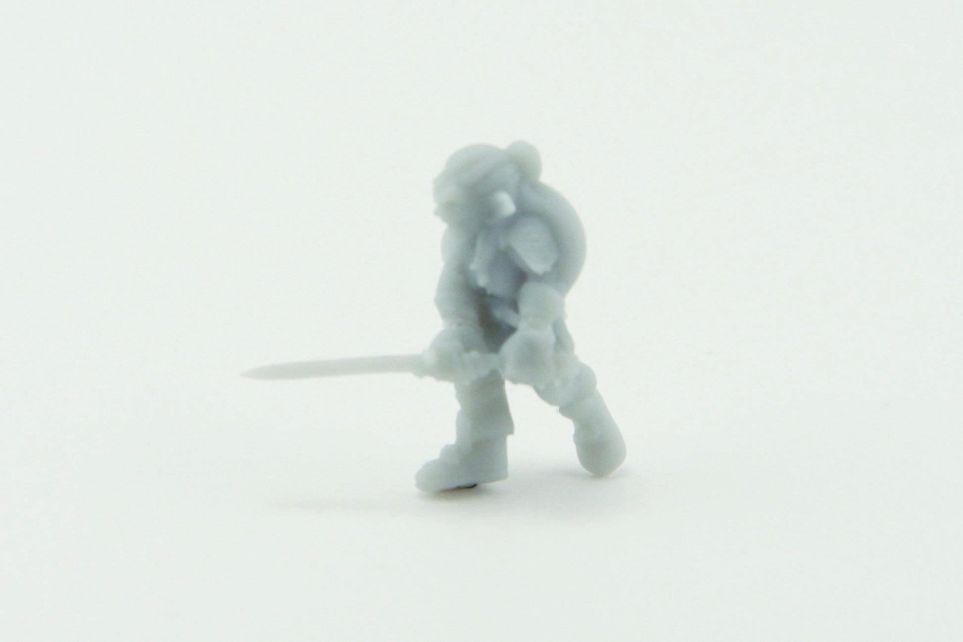 Fighter miniature that can be used for either a gnome or a halfling. Perfect for taking on the fantasy world in hard mode.