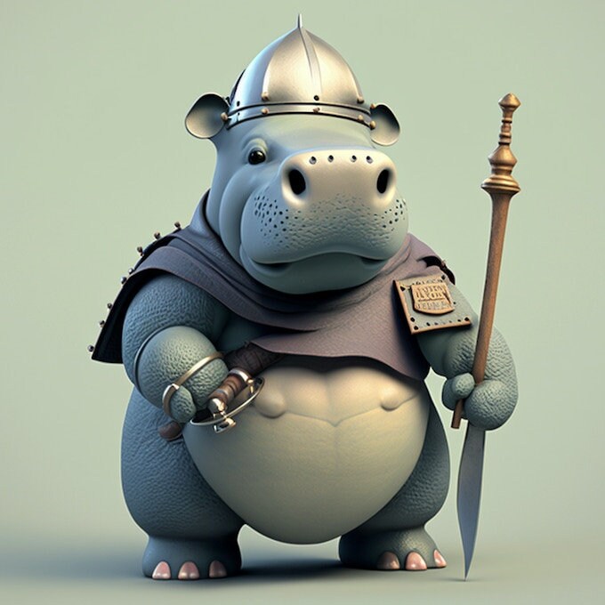 Hippokin Paladin Miniature | D&D Giff Miniature | DnD Hippo | RPG Paladin |DND Fighter Miniature | RPG Barbarian | Tabletop Game Figurine
