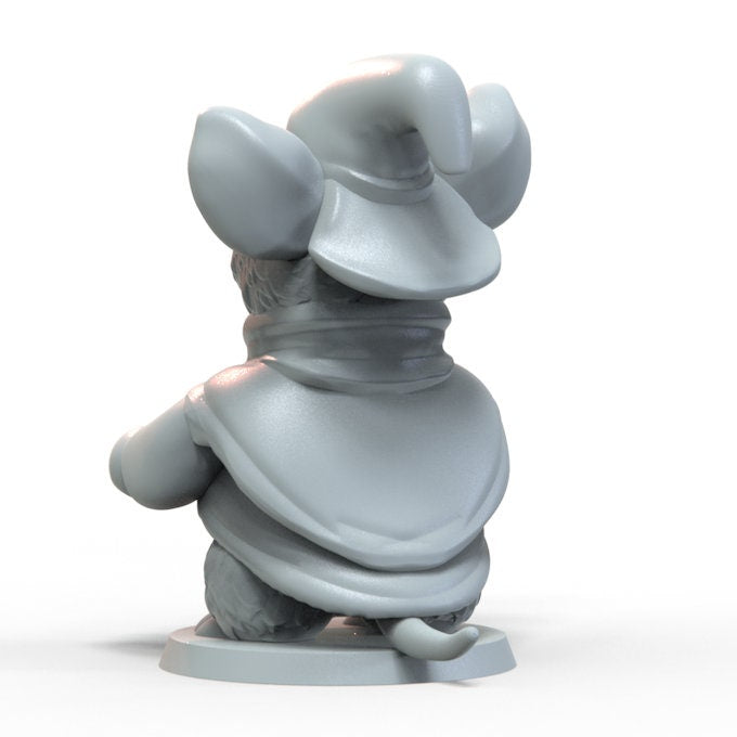 A male or female Mousefolk or Ratfolk Cleric miniature. Also works great as a sorcerer, warlock, druid, or wizard PC, a bandit or outlaw NPC, or even a BBEG.