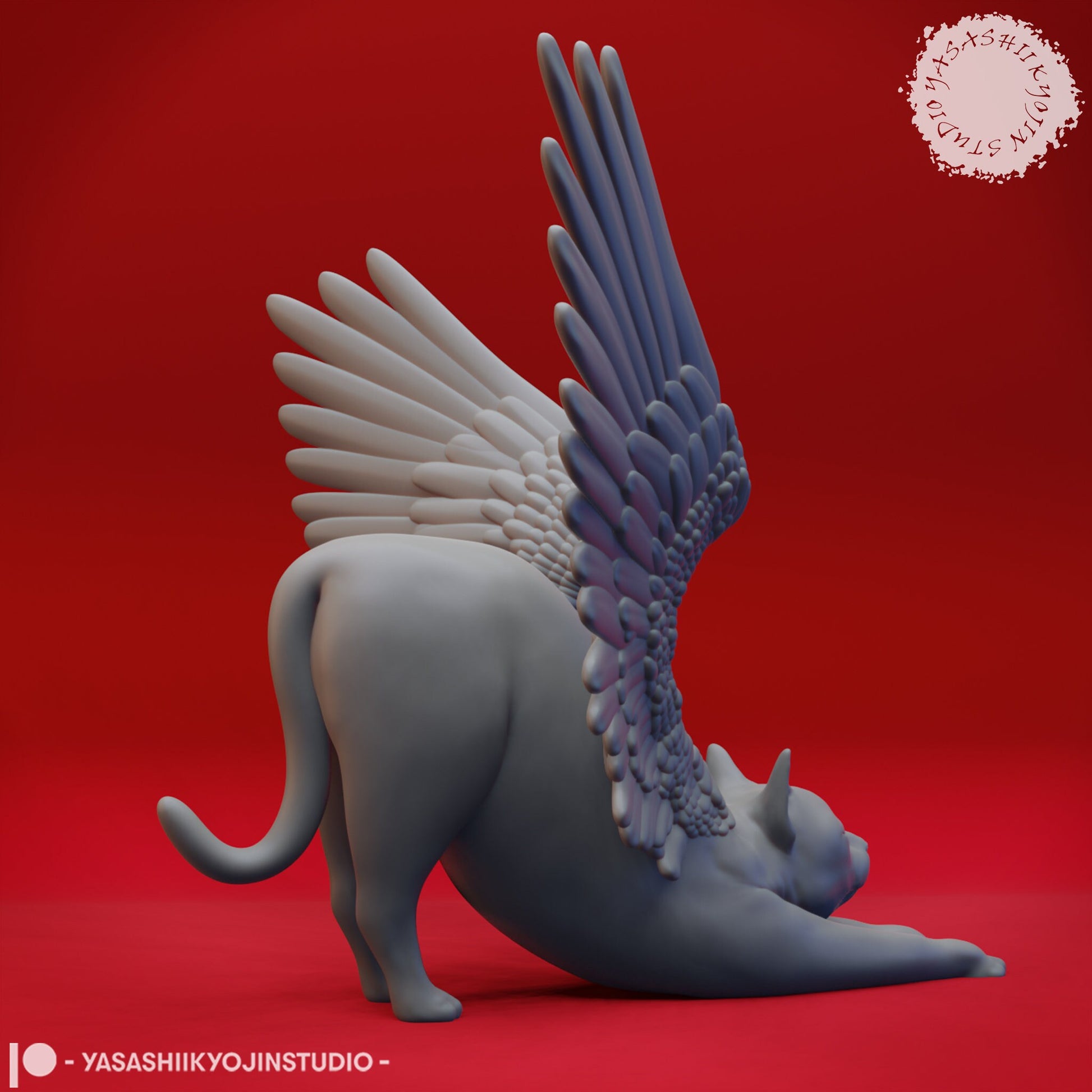 A collection of four Tressym miniatures. "A tressym was a magical beast resembling a small winged cat. They could be found across the warm and temperate lands of Faerûn, and were most common in northern Cormyr, particularly in the village of Eveningstar where they were seen as good luck charms and mascots and praised for keeping down rodents. They were also popular as familiars for good wizards." (https://forgottenrealms.fandom.com/wiki/Tressym)